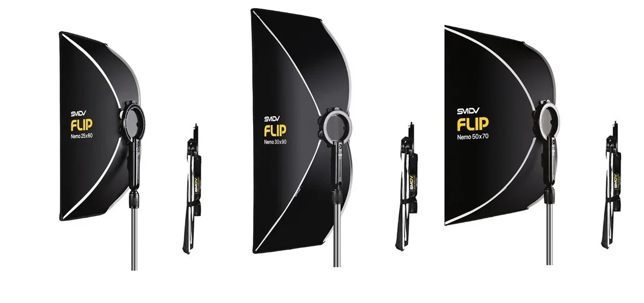 The Flip series soft boxes have been a very popular lightweight lighting tool for photographers and videographers. It has interchangeable mounts that work with a wide variety of popular flash and LED units. These lights include Godox, Profoto, Nanlite, Aputure, Elinchrom, Balcar (PaulBuff), Photogenic, Speedotron, Sony, Nikon, Canon, and many others.
