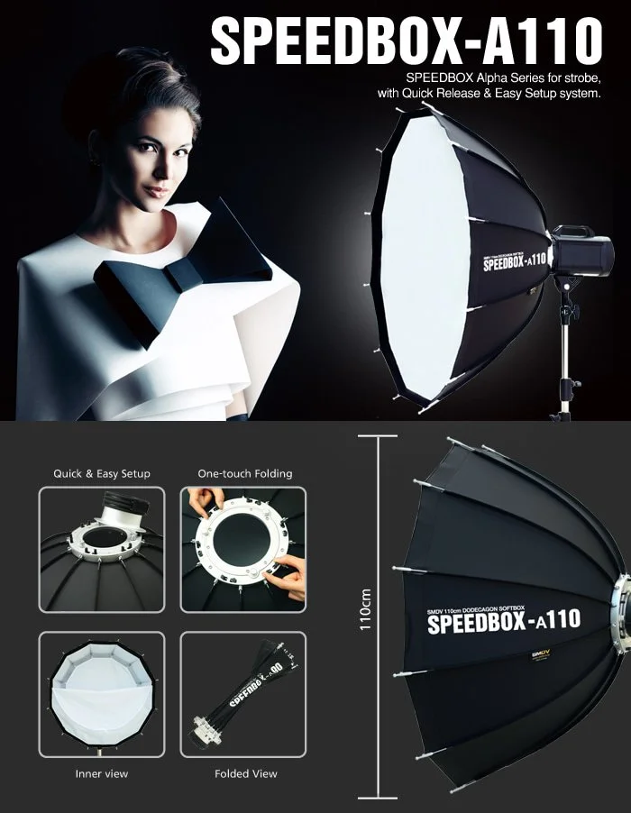 Heavy Duty series of soft boxes with interchangeable mounts. They open and close easily but do not fold flat.